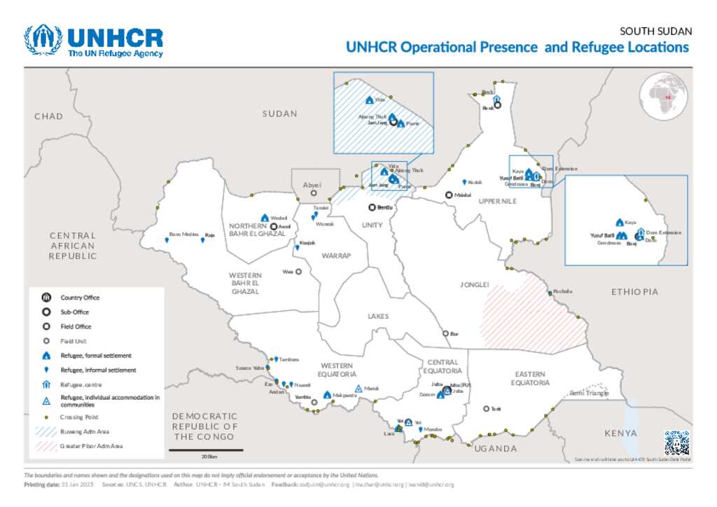 South Sudan - Refugee Locations & UNHCR Presence Map - 31 March 2025