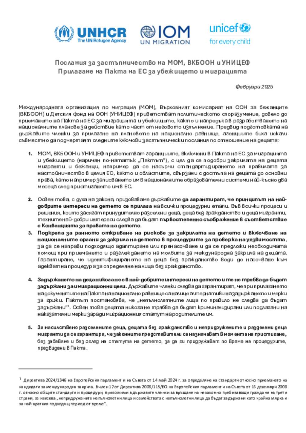 Bulgaria - IOM, UNHCR & UNICEF Advocacy Messages on Implementation of EU Asylum and Migration Pact - Bulgarian translation