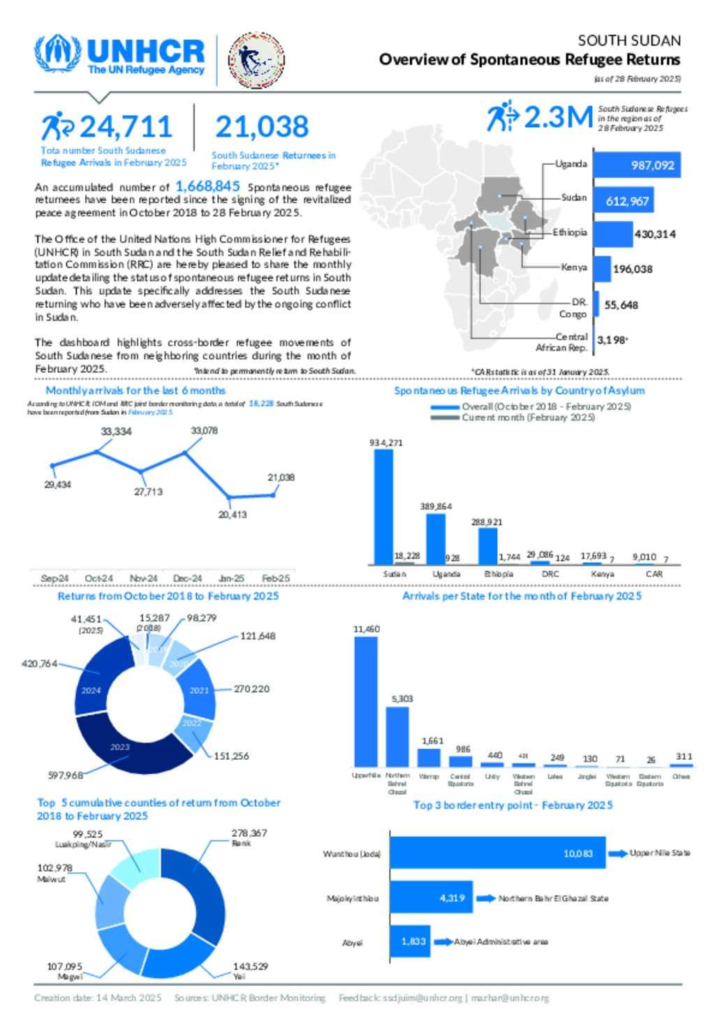 South Sudan - Spontaneous Refugee Returns Dashboard - 28 February 2025
