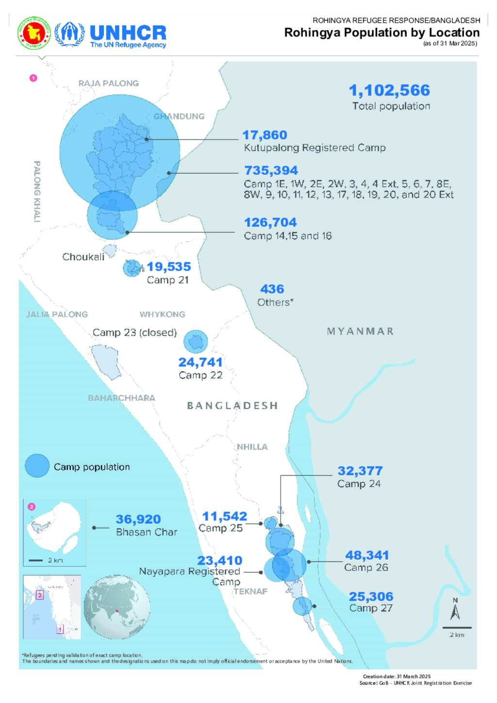 Joint Government of Bangladesh - UNHCR Population map as of March 2025
