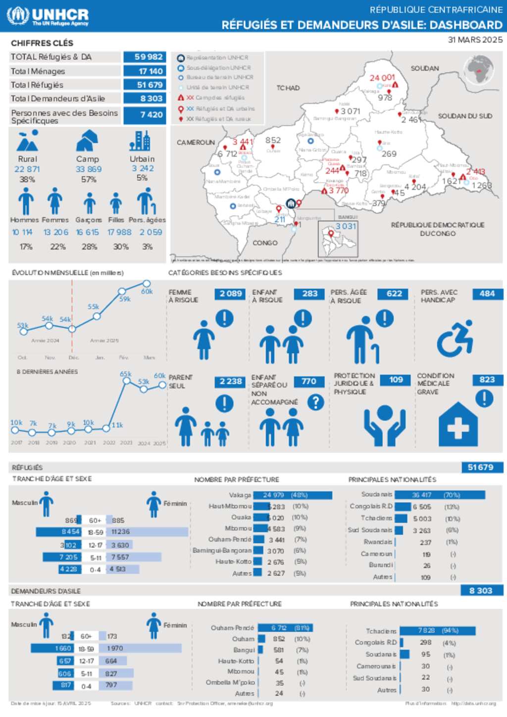 RCA Statistiques des réfugiés et demandeurs d'asile - 31 mars 2025