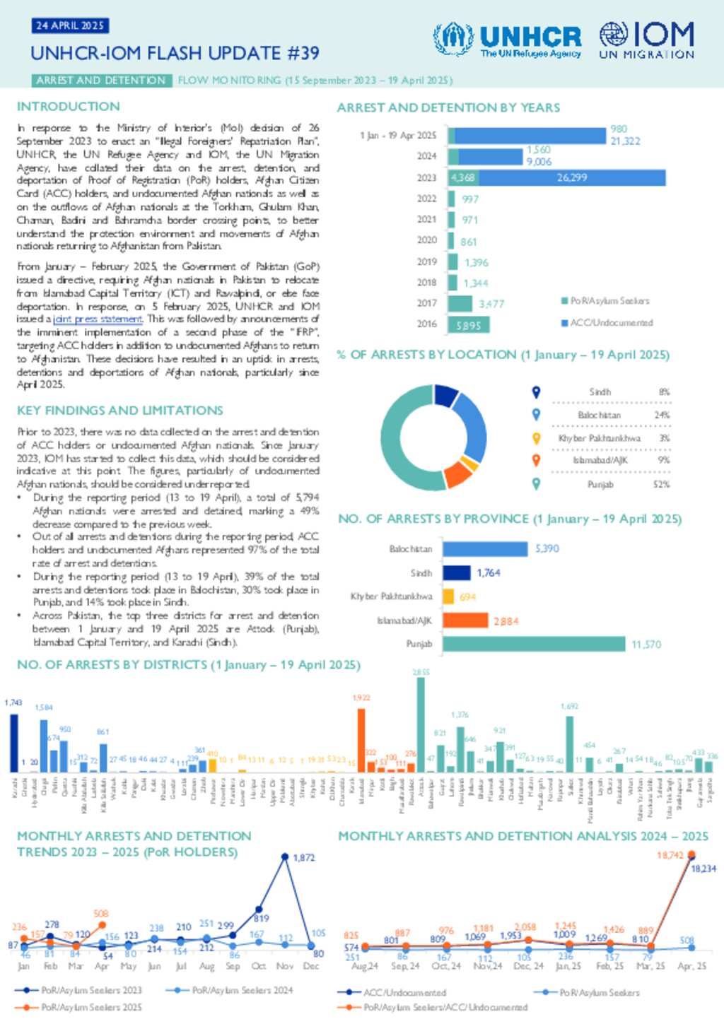 UNHCR-IOM Pakistan Flash update # 39 on Arrest and Detention/Flow Monitoring, 15 Sep 2023 to 19 April 2025