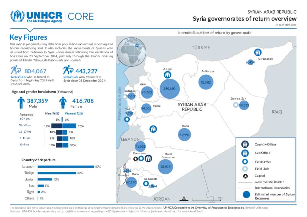 Syria governorates of return overview as of 24 April 2025