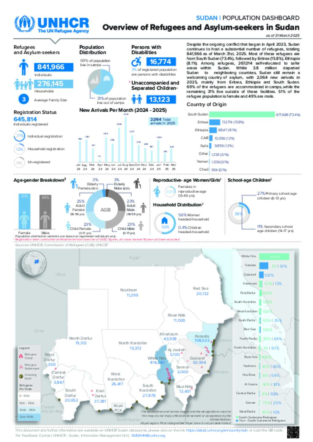 UNHCR Sudan - Overview of Refugees and Asylum-seekers in Sudan Dashboard as of 31 March 2025