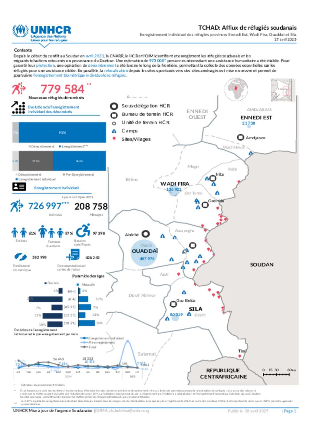 UNHCR TCHAD| Afflux des Réfugiés du Soudan | Statistiques de l'enregistrement individuel biométrique (au 27 avril 2025)