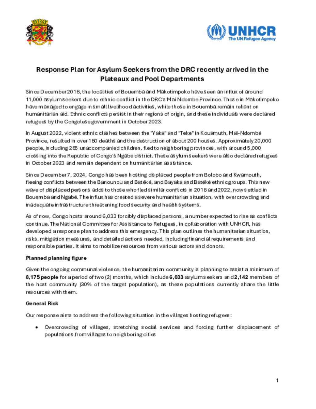 Response Plan for the Situation of the New arrivals in Bolobo - 30-April-2025
