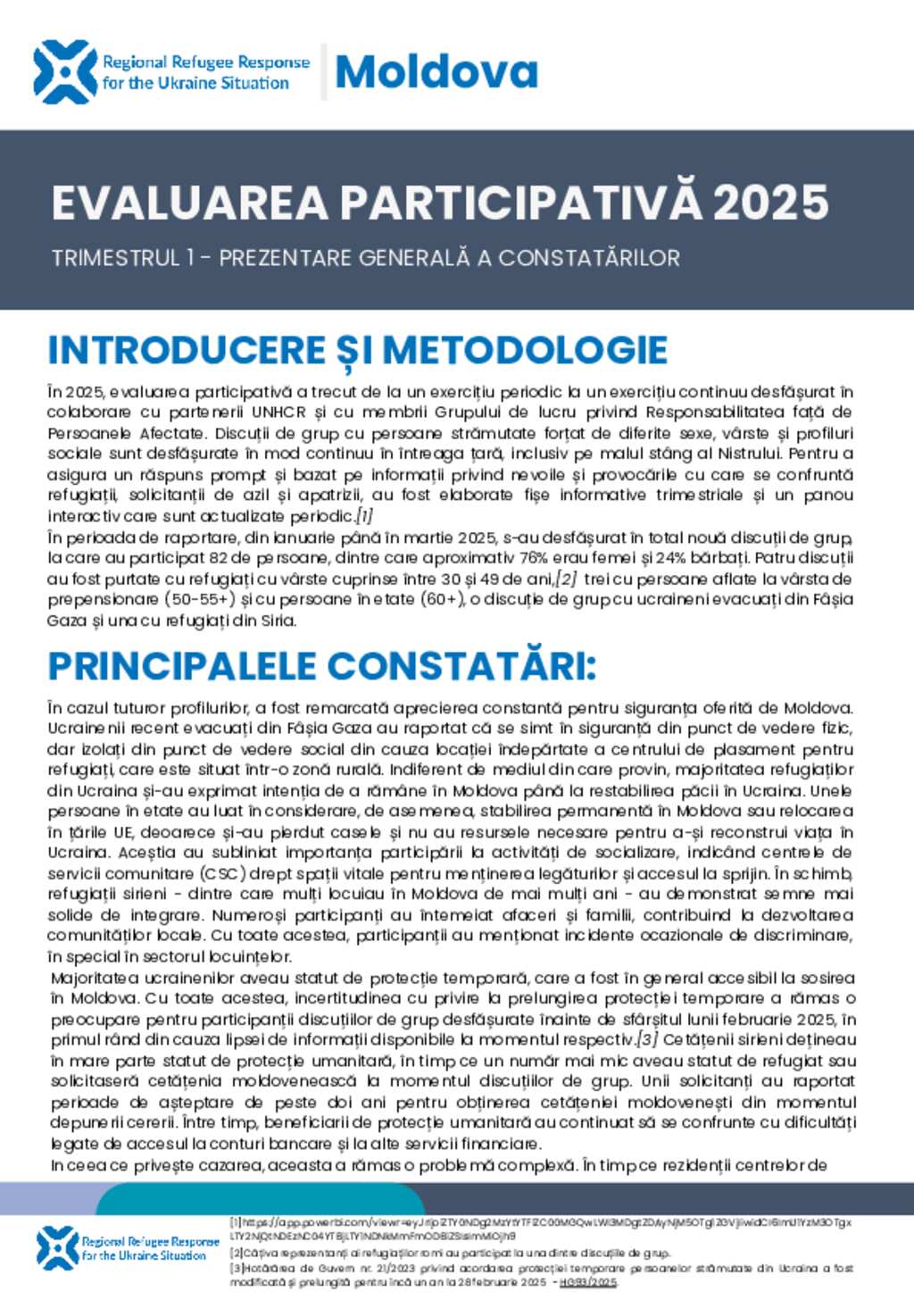 Ukraine Situation - Moldova: Moldova Participatory Assessment Factsheet 2025 Q1 [RO]