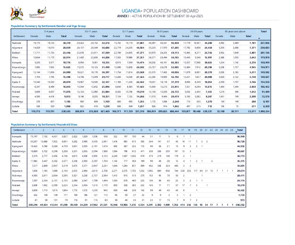 Uganda - Refugee Statistics April 2025 - Active Population by Settlement