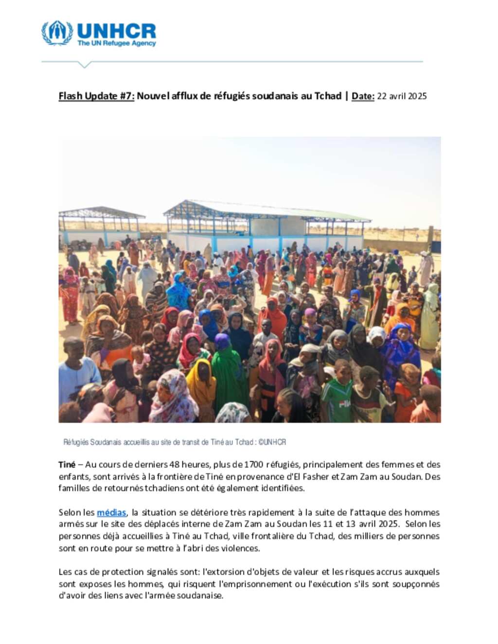 Flash Update #7 Nouvel afflux de réfugiés soudanais au Tchad