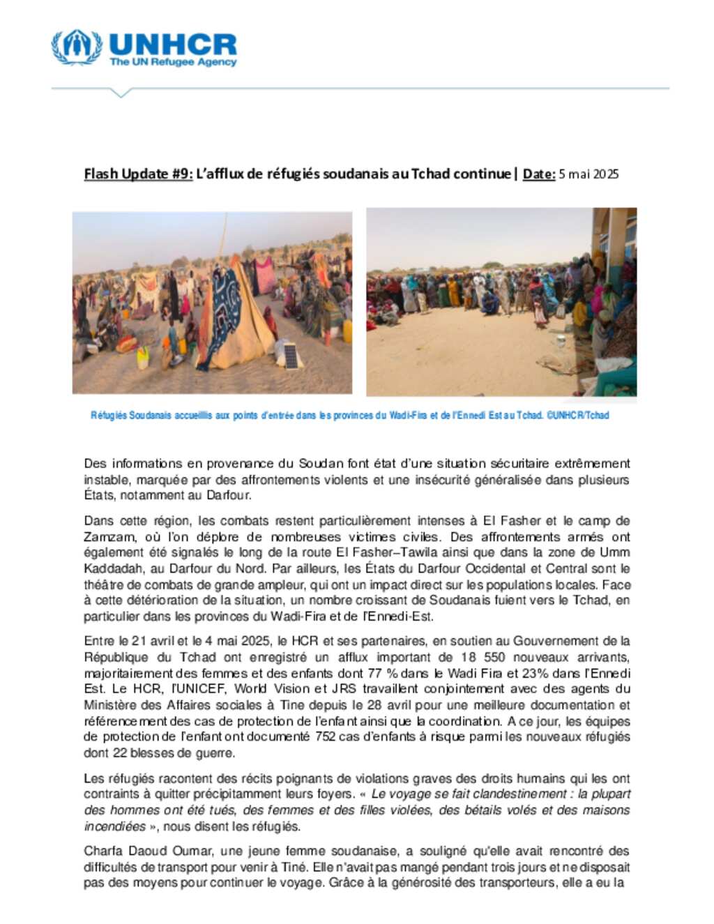 Flash Update #9 Nouvel afflux de réfugiés soudanais au Tchad