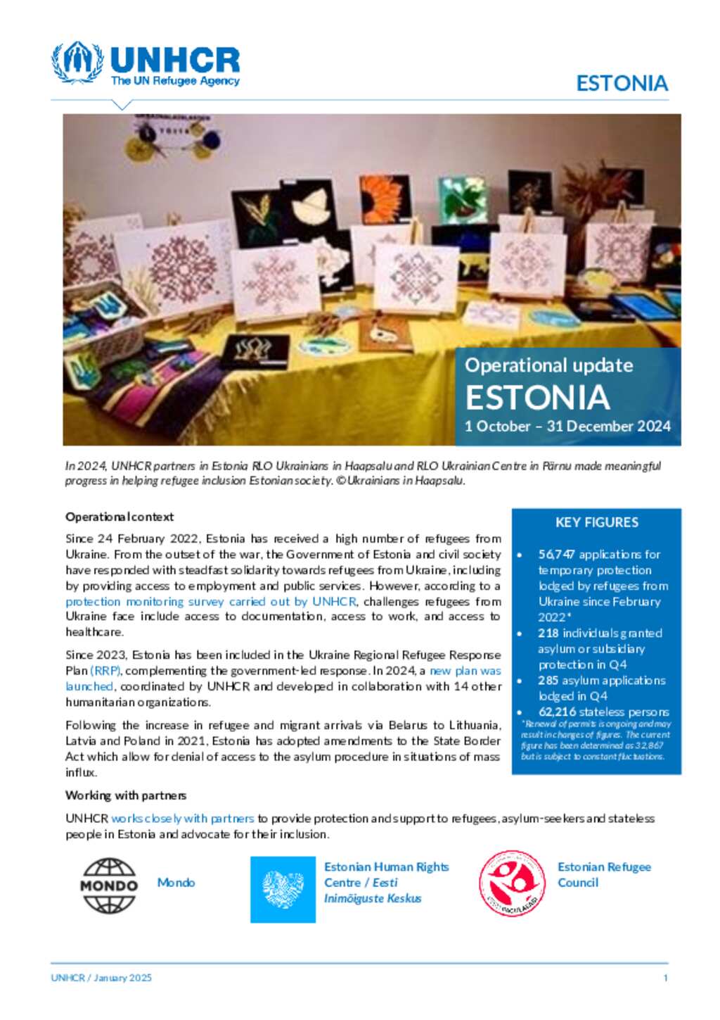 Update on UNHCR’s work and activities in Estonia, carried out by UNHCR and partners in Q4 2024