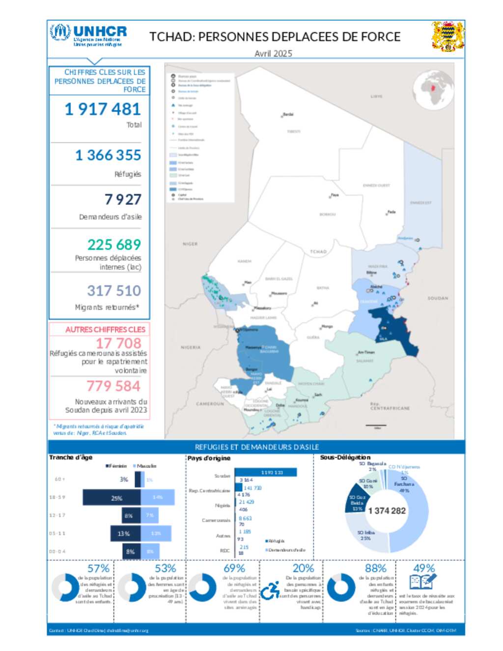 UNHCR TCHAD| Population des personnes en déplacement forcé au Tchad (Avril 2025)