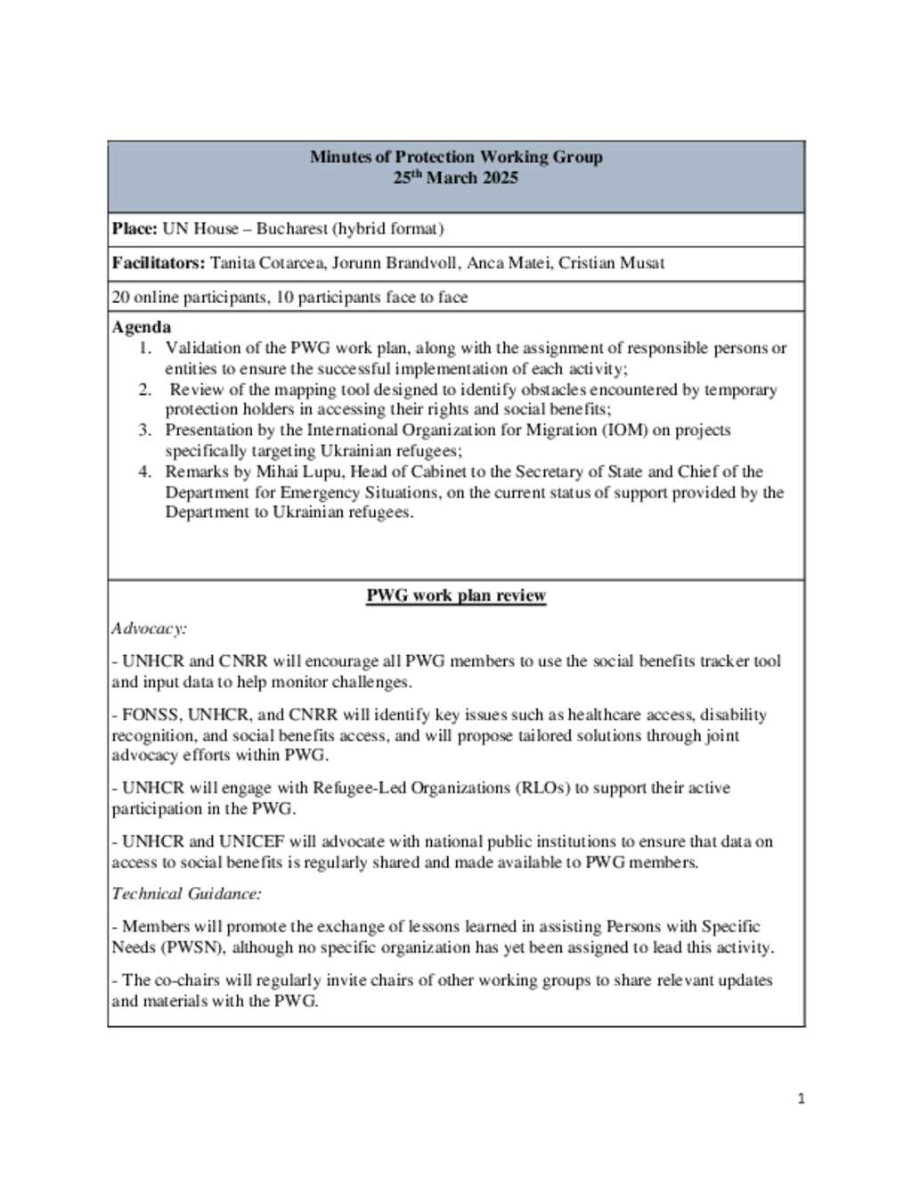 Protection Working Group minutes - 23 March 2025