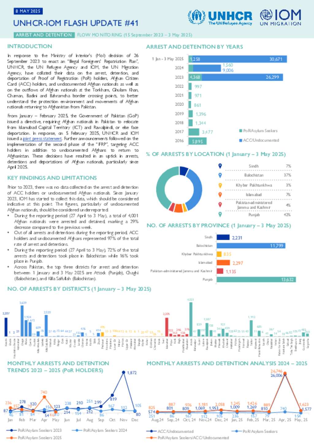 UNHCR-IOM Pakistan Flash update # 41 on Arrest and Detention/Flow Monitoring, 15 Sep 2023 to 3 May 2025