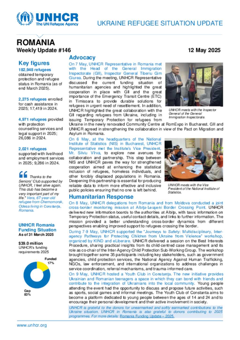 UNHCR Romania Ukraine Refugee Situation Update - 12 May 2025