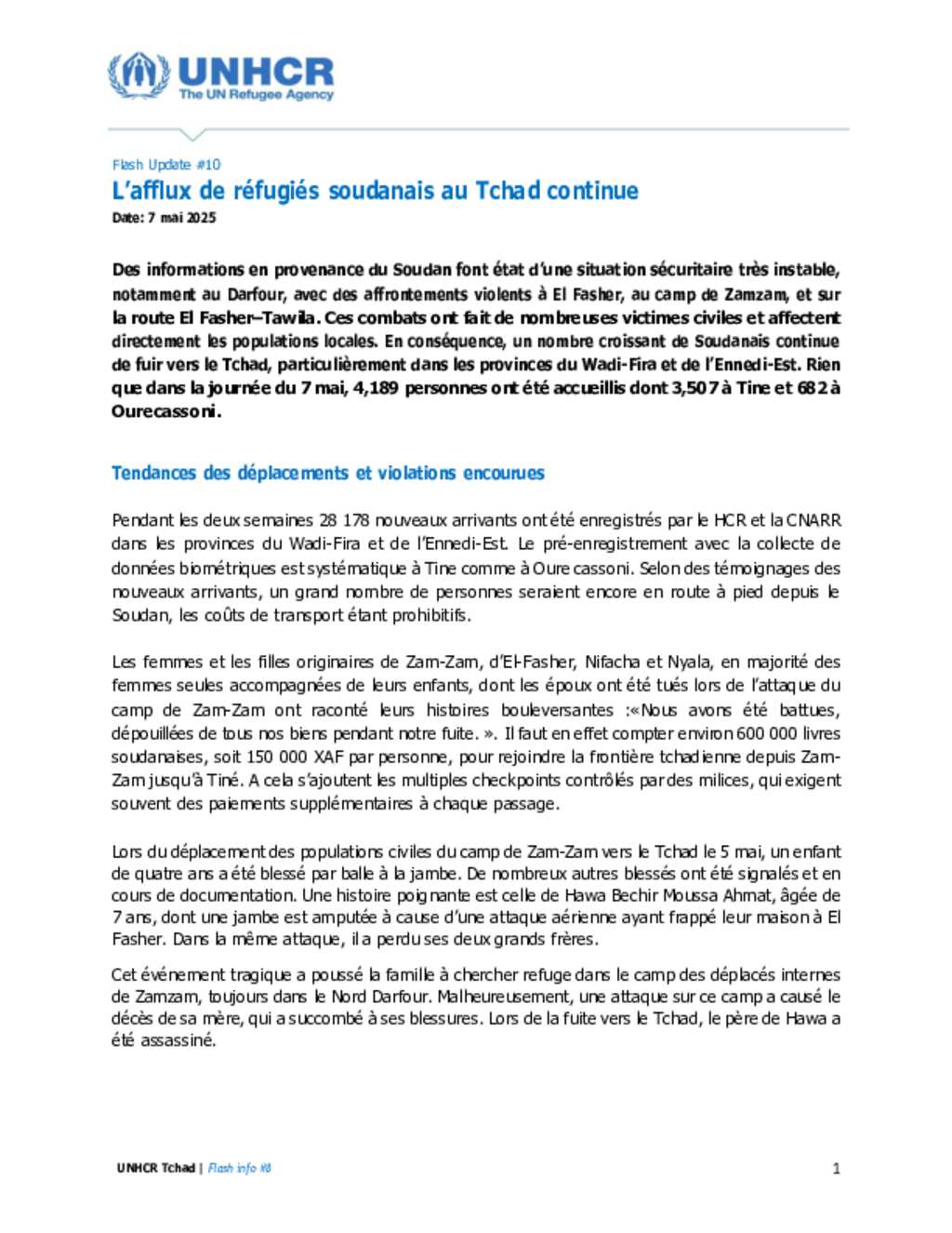 Flash Update #10 Nouvel afflux de réfugiés soudanais au Tchad