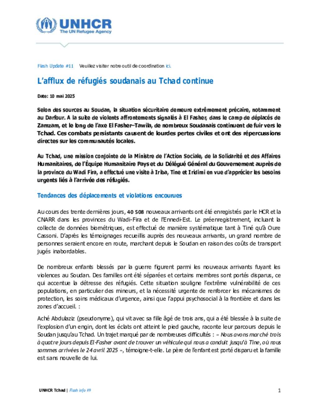 Flash Update #11 Nouvel afflux de réfugiés soudanais au Tchad