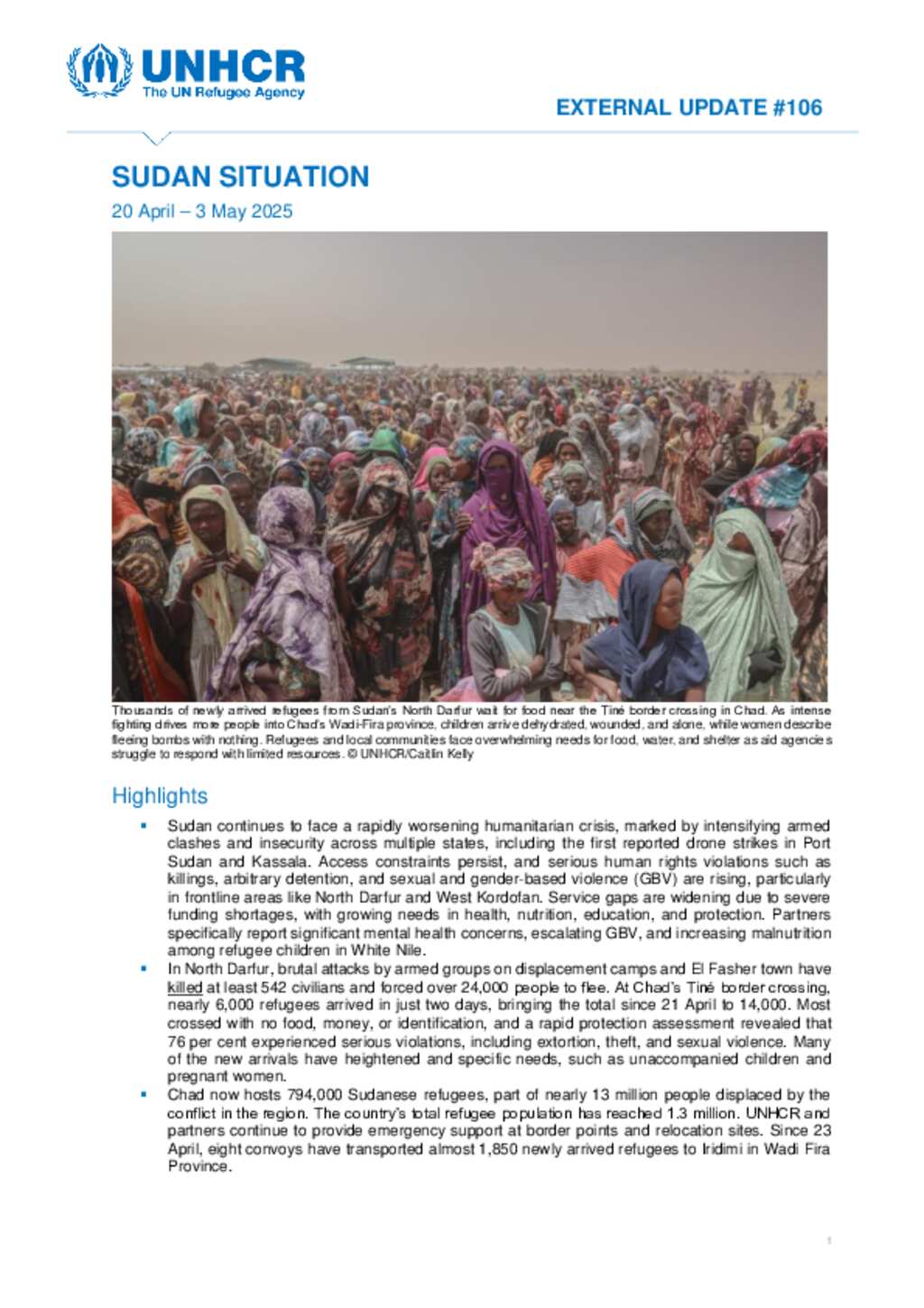 Sudan Situation: UNHCR External Update #106 - 3 May 2025