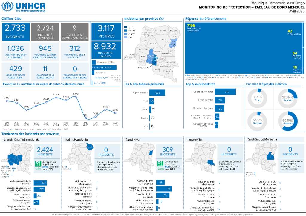 République Démocratique du Congo - Tableau de bord de Monitoring de Protection au 30 avril 2025