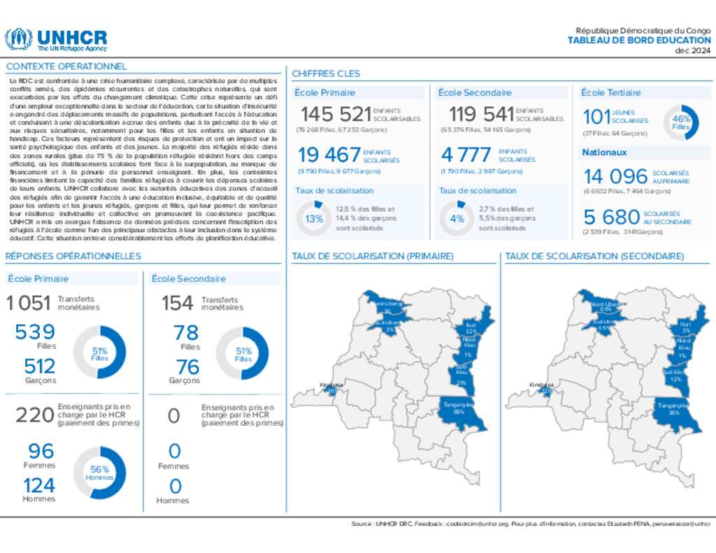 République Démocratique du Congo - Tableau de bord de l'Education au 31 décembre 2024