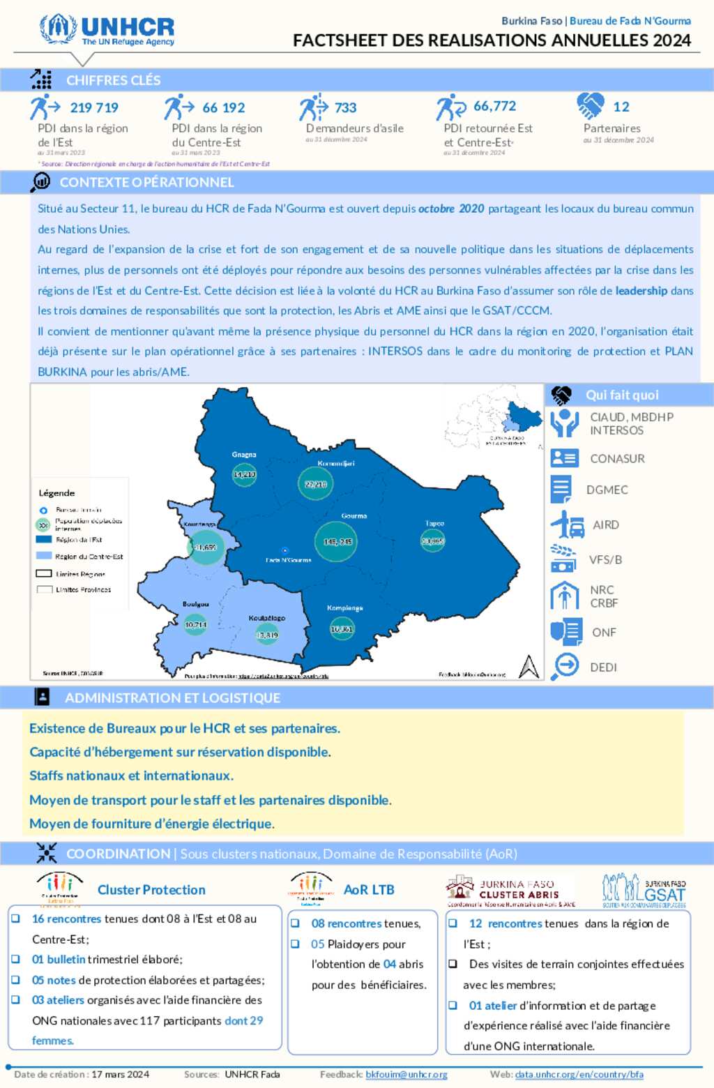 UNHCR BURKINA FASO - FACTSHEET - APERCU DE LA REALISATION PAR SECTEUR D'INTERVENTION DE 2024 - EST