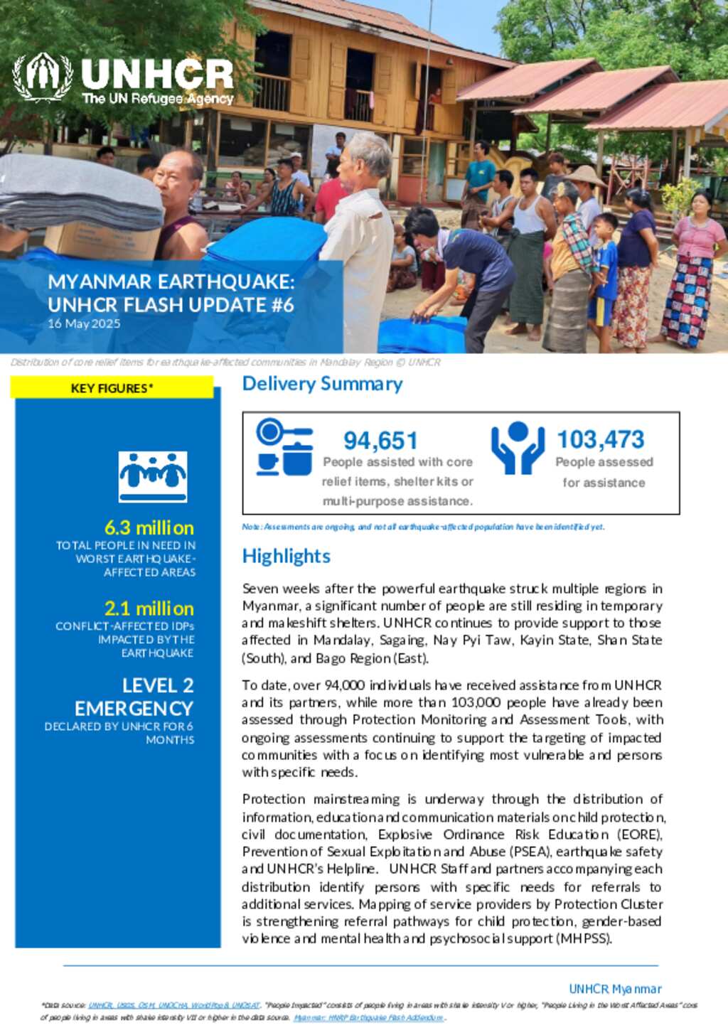 UNHCR Flash Update on Earthquake in Myanmar #6
