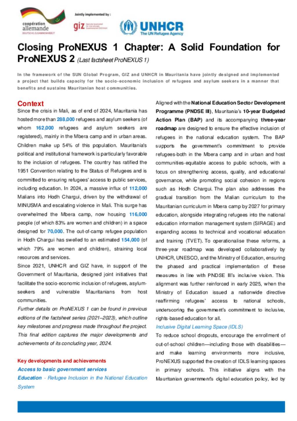 In the framework of the SUN Global Program, GIZ and UNHCR in Mauritania have jointly designed and implemented a project that builds capacity for the socio-economic inclusion of refugees and asylum seekers in a manner that benefits and sustains Mauritanian host communities.