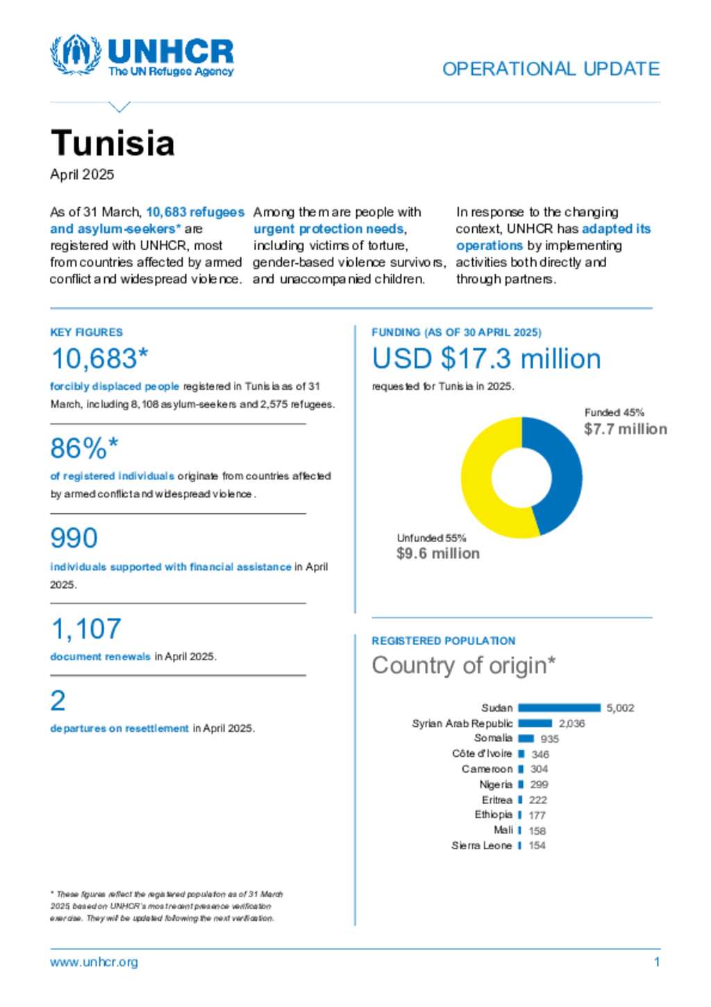 UNHCR Tunisia Monthly Operational Update (April 2025)