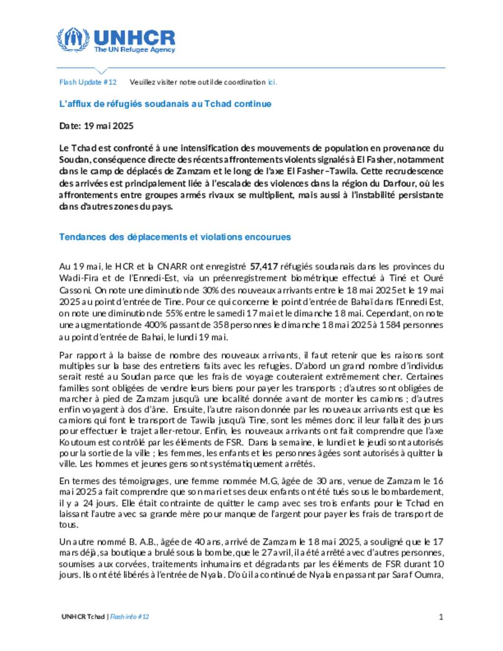 Flash Update #14 Nouvel afflux de réfugiés soudanais au Tchad