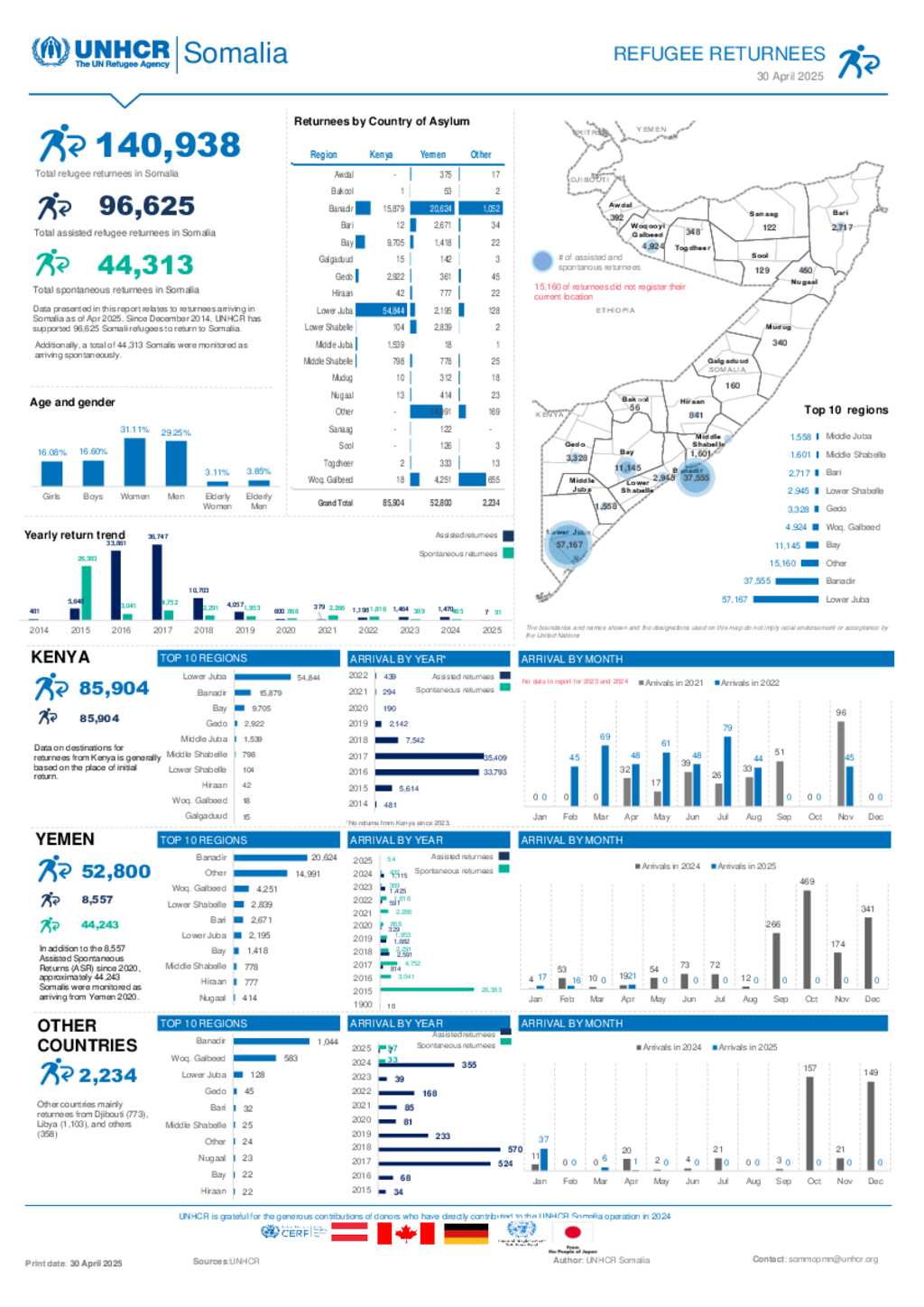 UNHCR Somalia Refugee Returnees Dashboard - April 2025