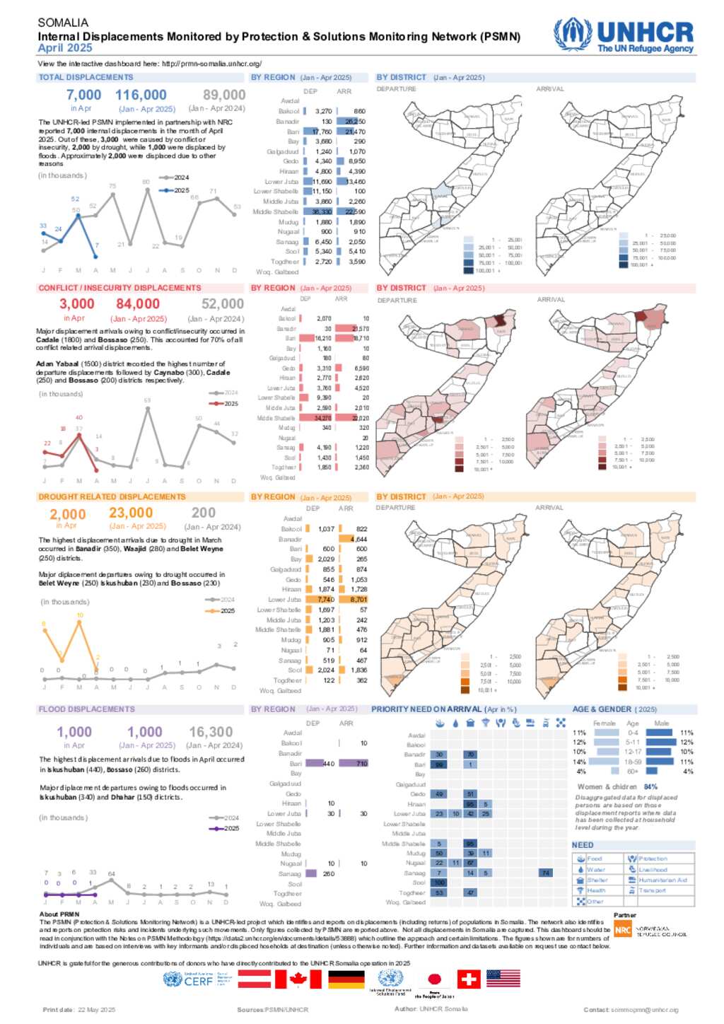 UNHCR Somalia PSMN Internal Displacements Dashboard - April 2025