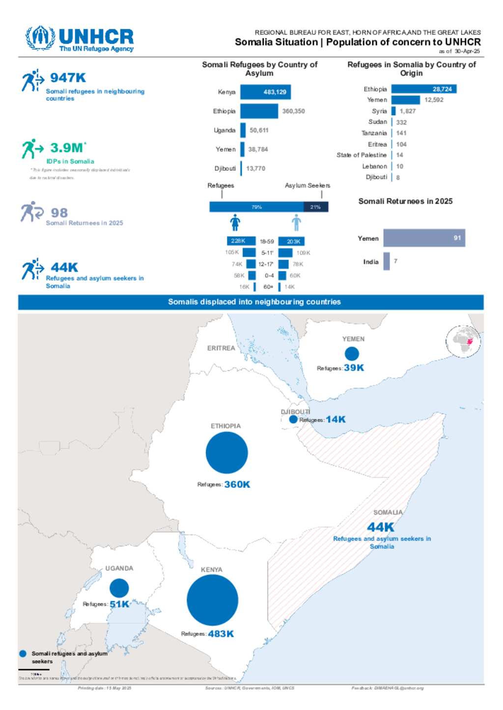 Somalia Situation: Population Dashboard - 30 April 2025