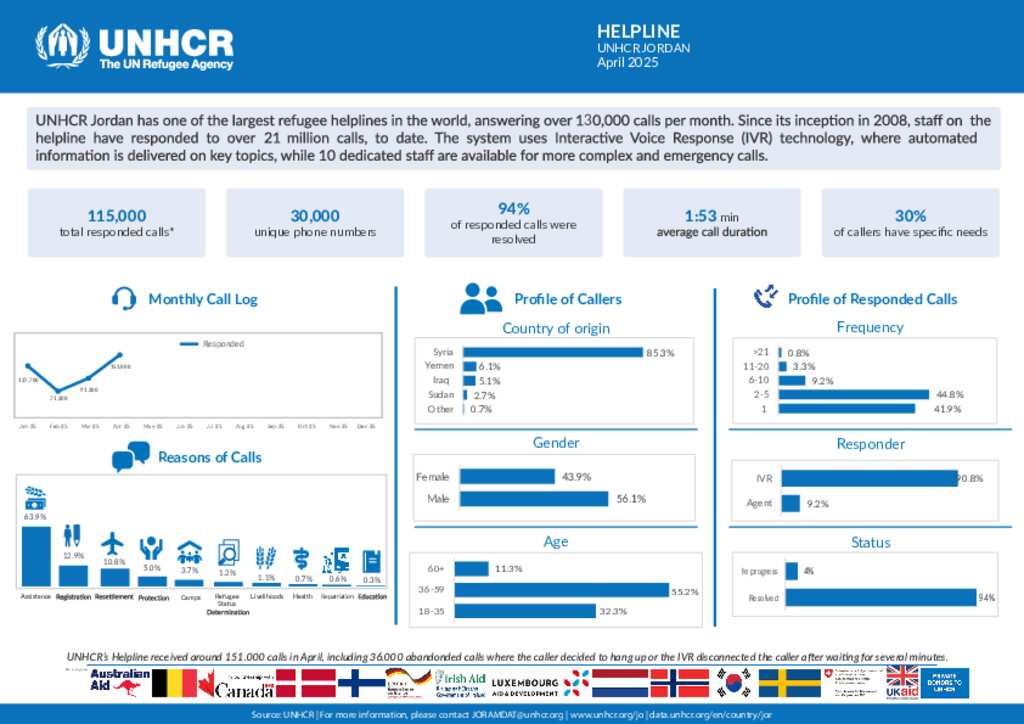 Jordan: Helpline Monthly Dashboard (April 2025)