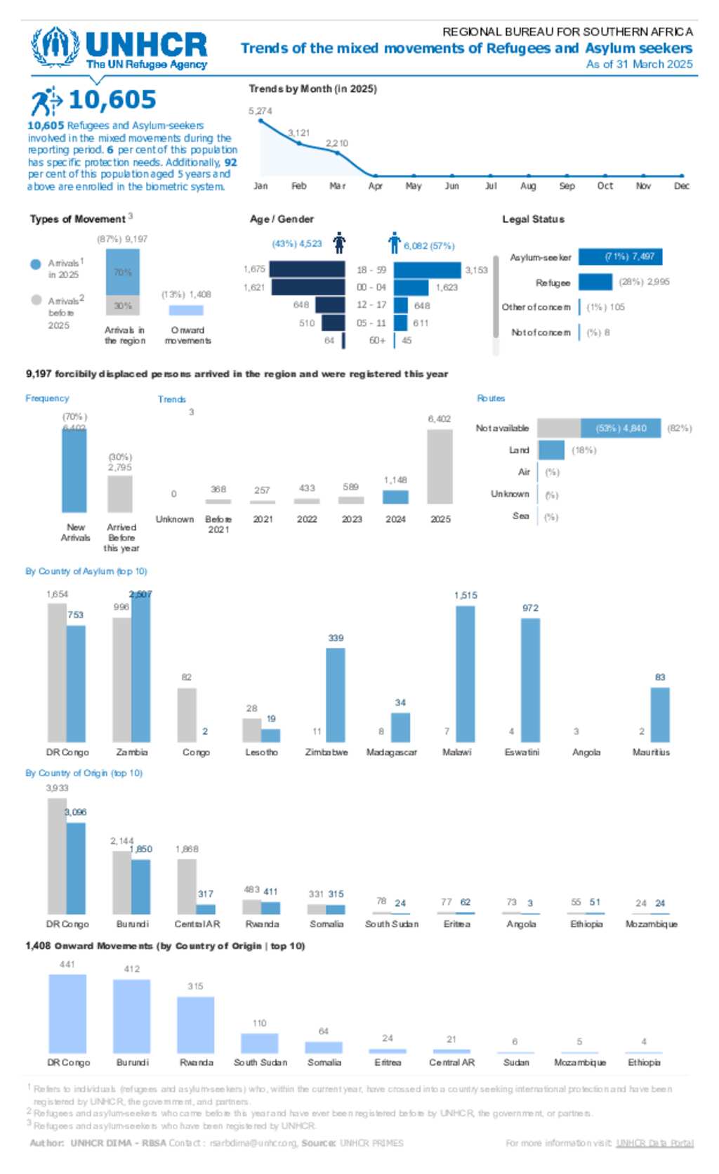 Trends of the mixed movements of Refugees and Asylum seekers in Southern African Region - March 2025