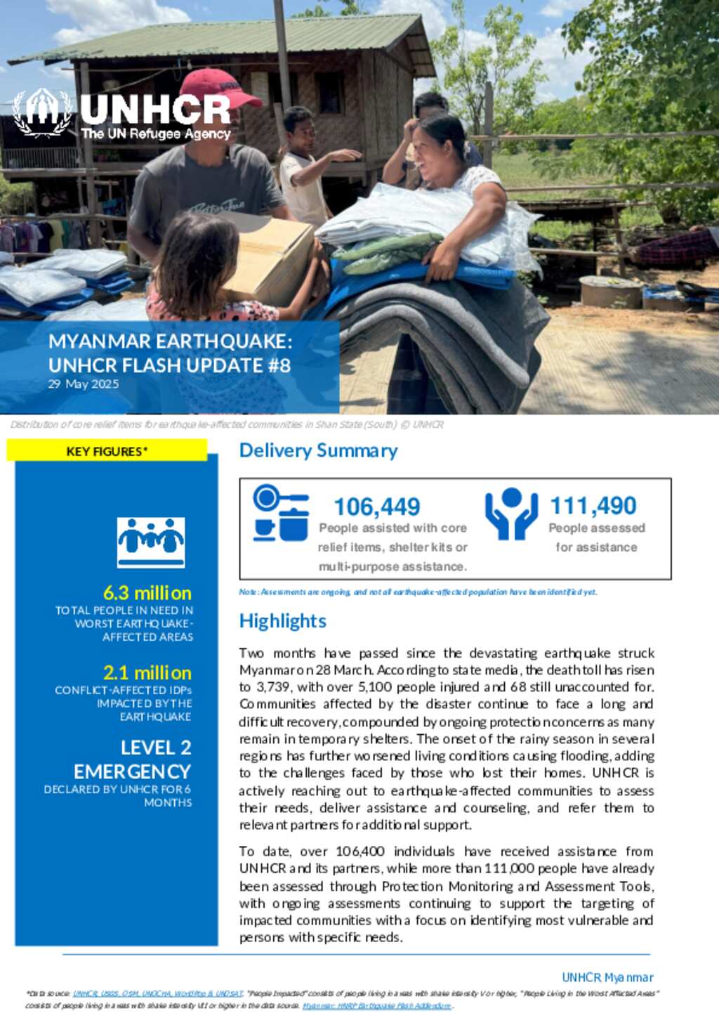 UNHCR Flash Update on Earthquake in Myanmar #8 - 29 May 2025