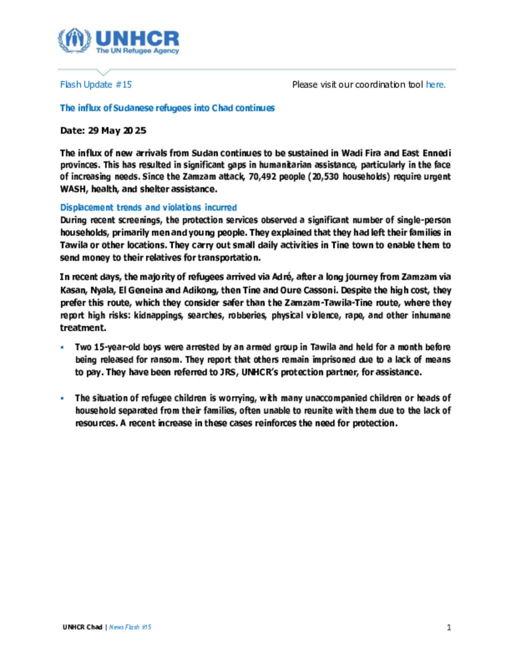 Flash Update #15 New Sudanese Refugee Influx into Chad