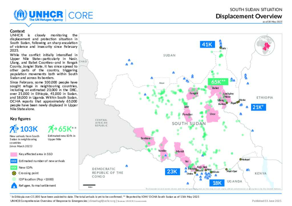 This is a CORE product showing the recent displacement from South Sudan within and outside the country.