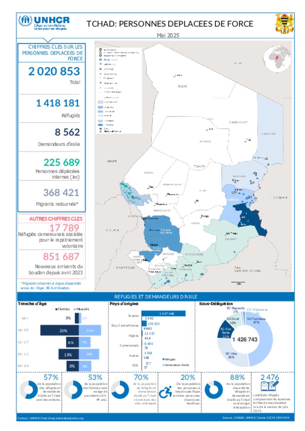 UNHCR TCHAD| Population des personnes en déplacement forcé au Tchad (Mai 2025)