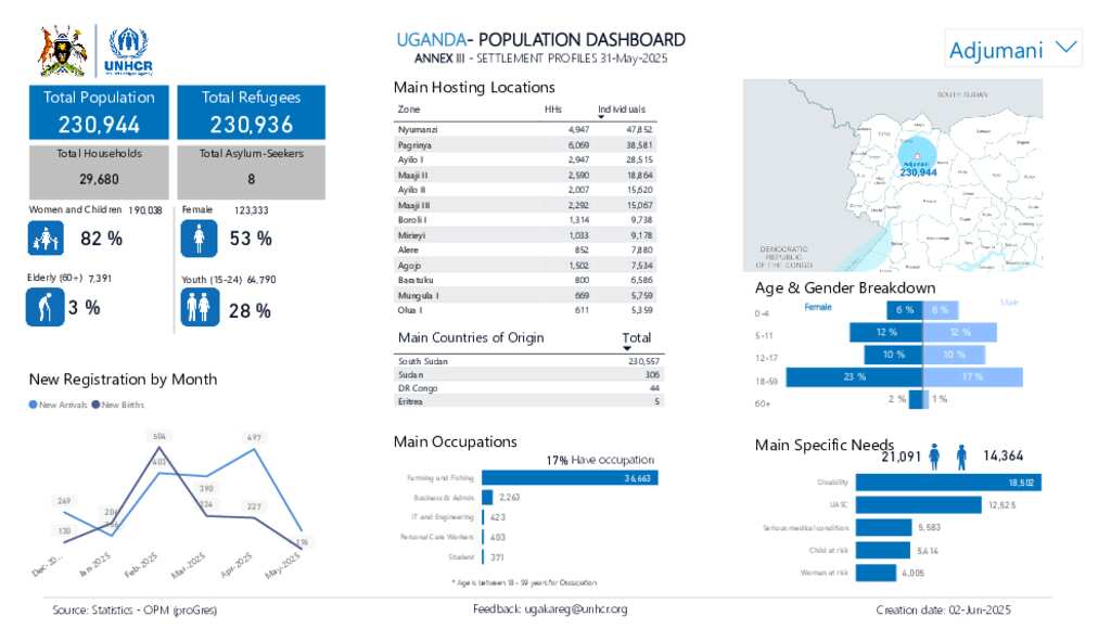 Uganda - Refugee Statistics May 2025 - Settlement Profiles