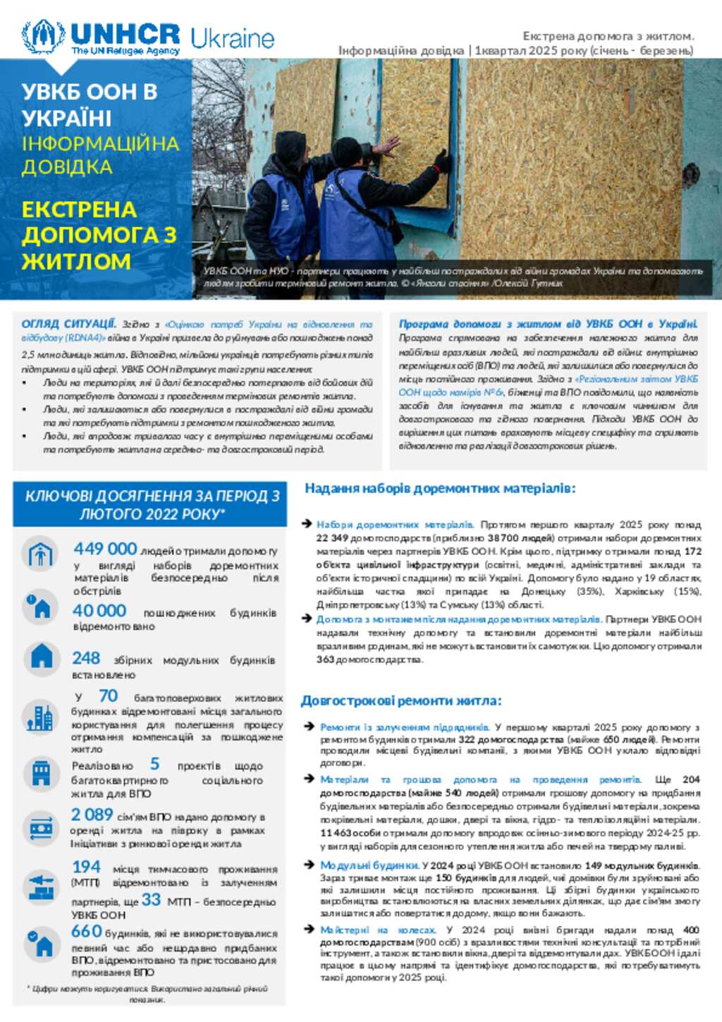 UNHCR Ukraine Emergency Shelter and Housing Factsheet March 2025 - UKR