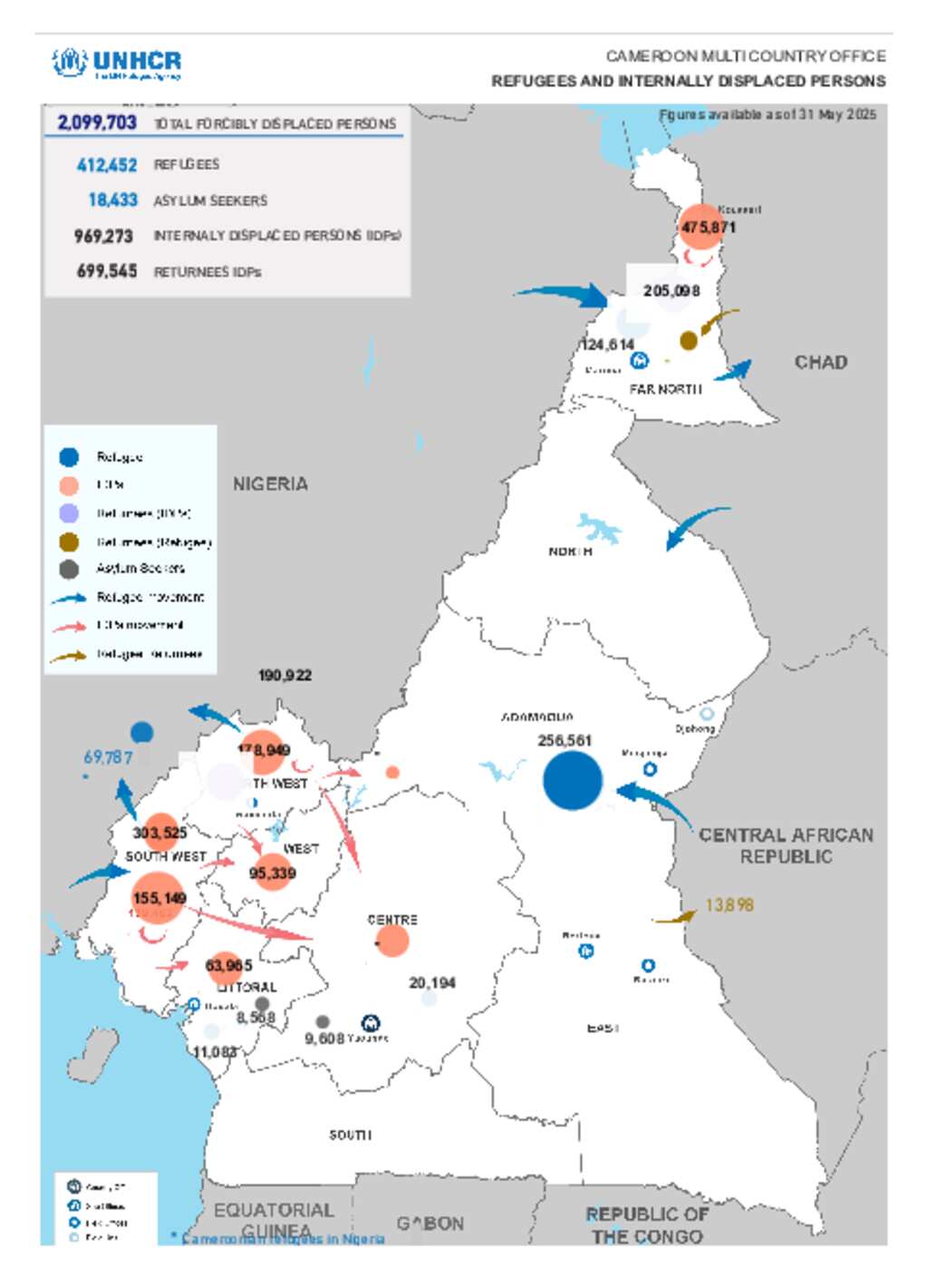 UNHCR CAMEROON MCO : Refugees and Internally Displaced Persons Movement (May 2025)