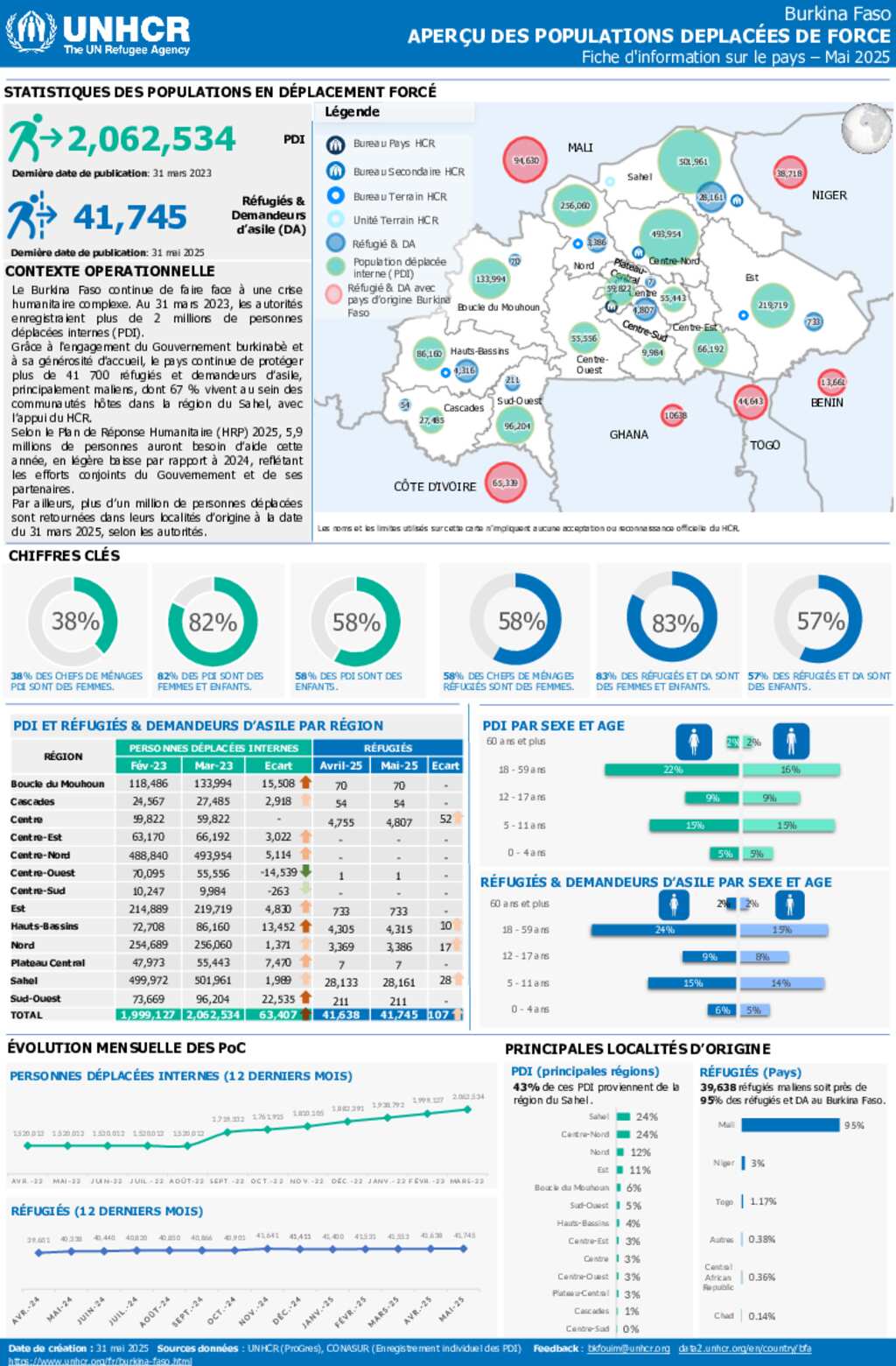 UNHCR Burkina Faso - Aperçu des personnes déplacées de force au 31 mai 2025