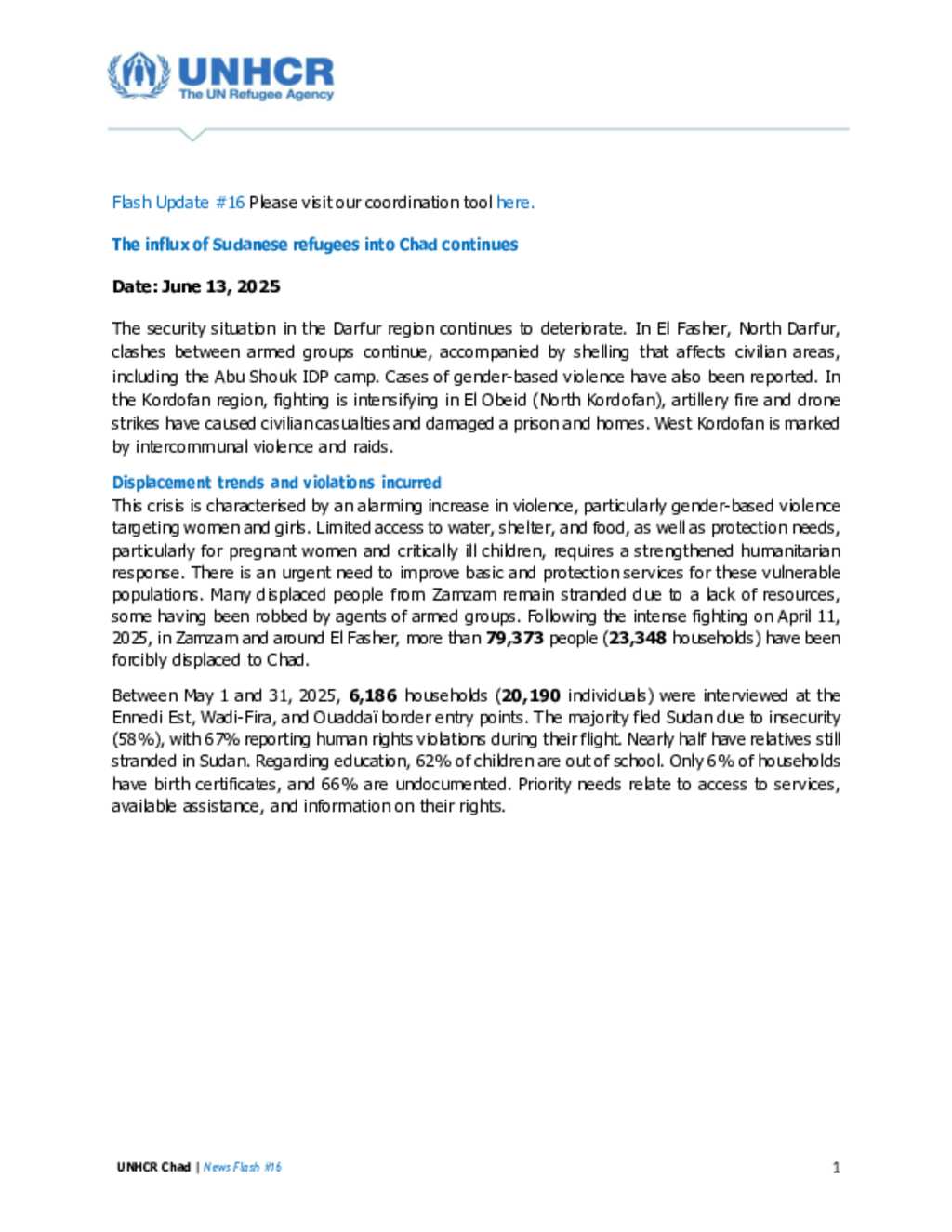 Flash Update #16 New Sudanese Refugee Influx into Chad
