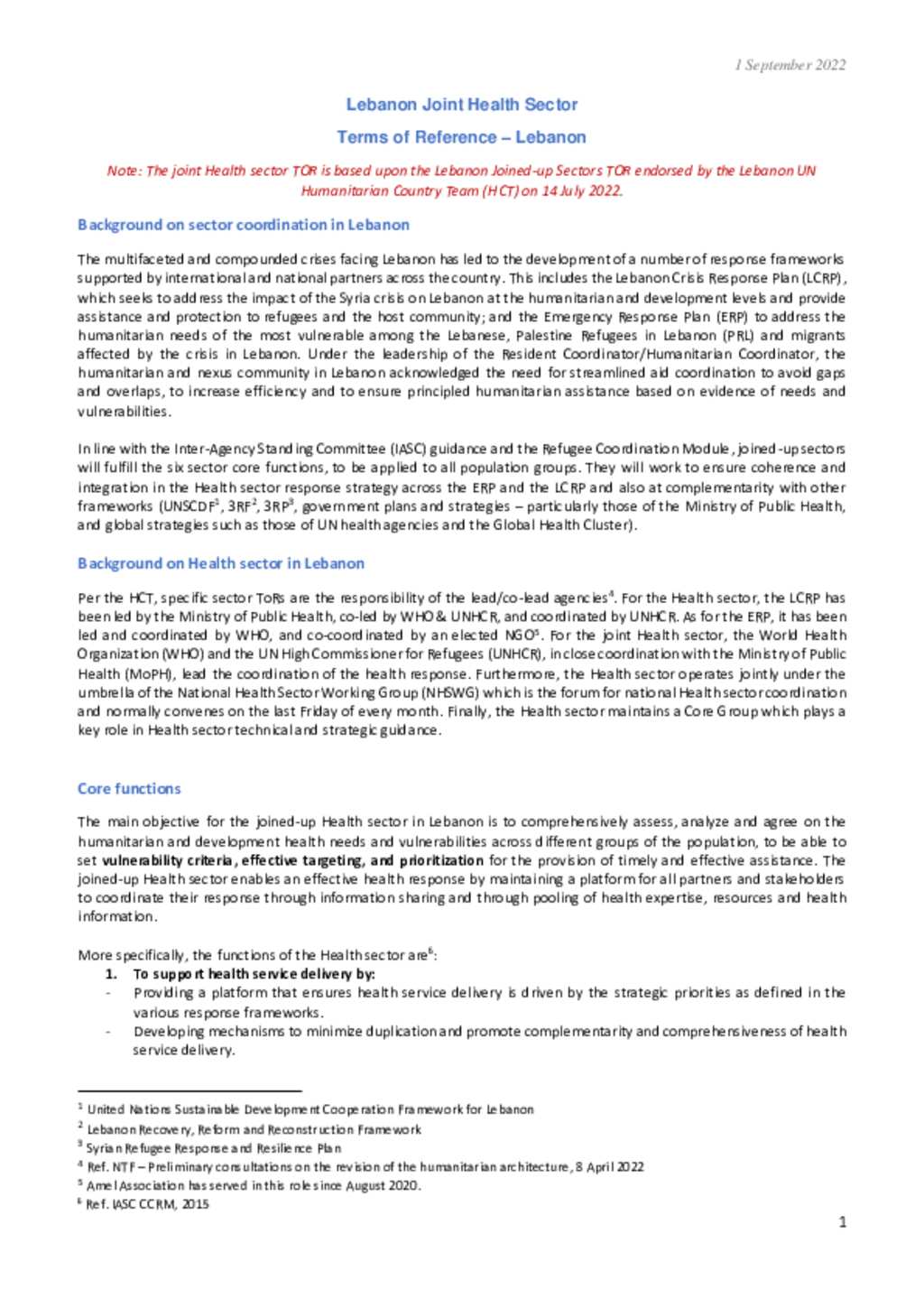 Terms of Reference - Health Sector Working Group - 2022