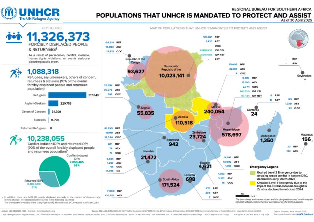 Southern Africa Region Population Dashboard by Population Type - April 2025