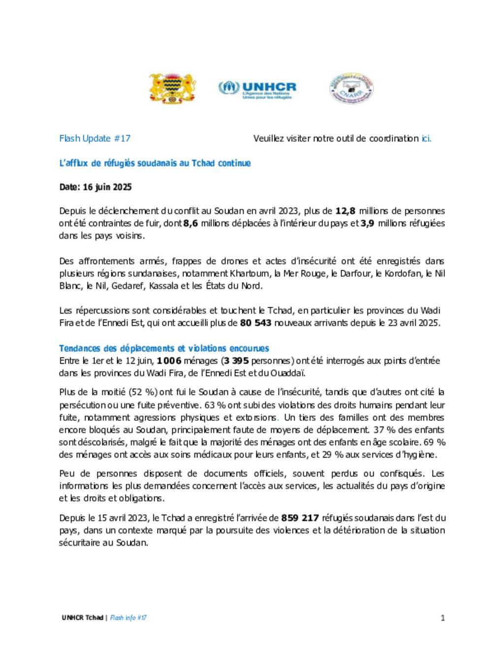 Flash Update #17 Nouvel afflux de réfugiés soudanais au Tchad