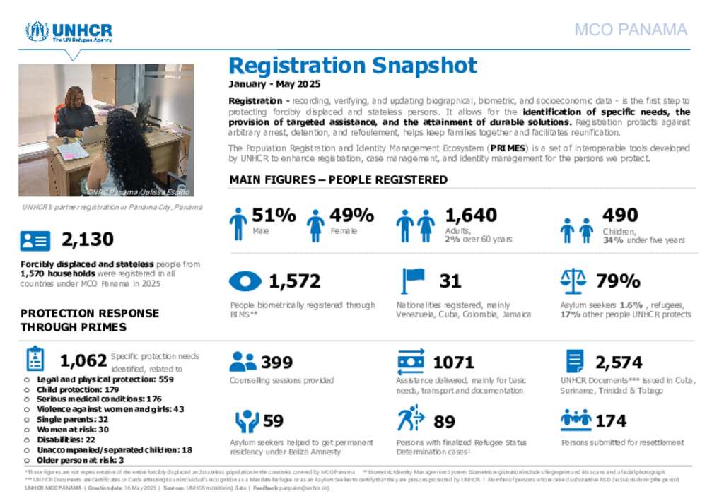 Snapshot of registration activities conducted by UNHCR Multi Country Office Panama