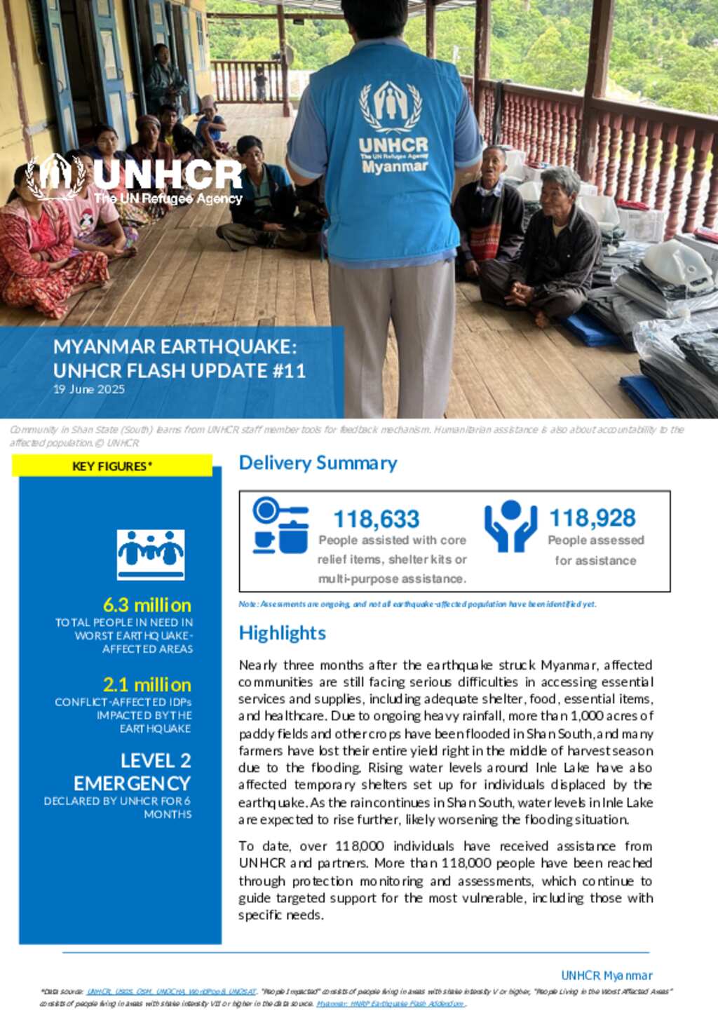 UNHCR Flash Update on Earthquake in Myanmar #11 - 19 Jun 2025
