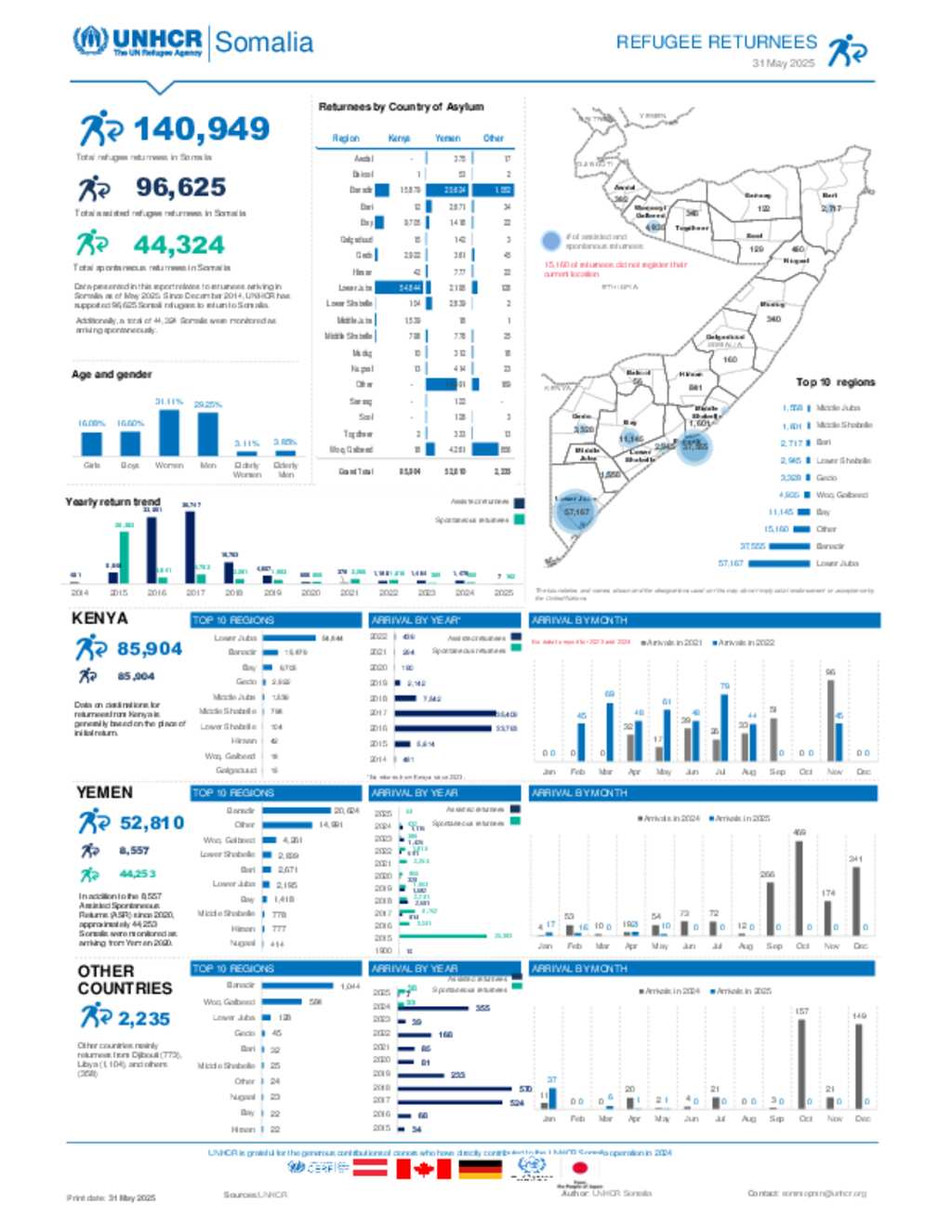UNHCR Somalia Refugee Returnees Dashboard - May 2025