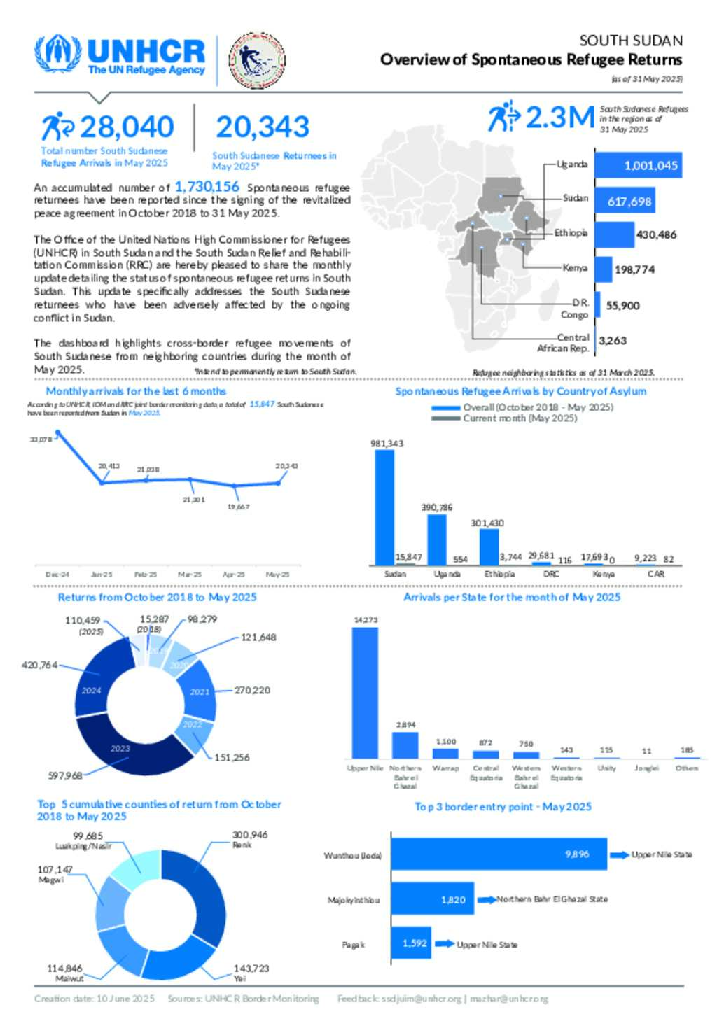 South Sudan - Spontaneous Refugee Returns Dashboard - 31 May 2025